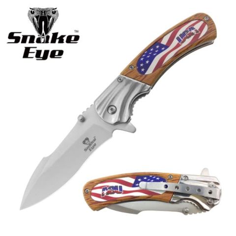 8'' Snake Eye Tactical Spring-Assisted Knife With Wood Handle - Wavy USA Flag