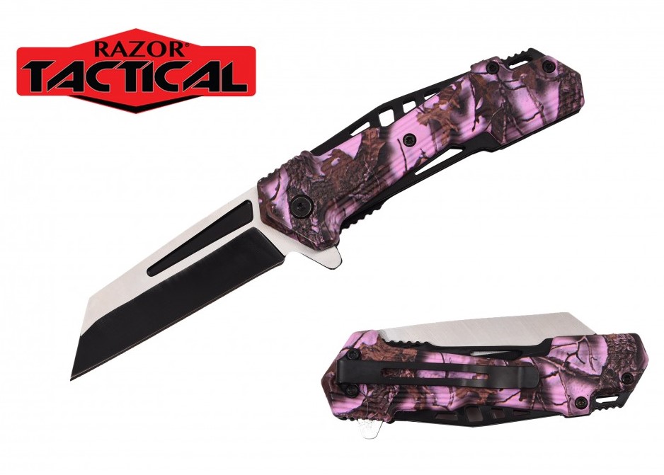 Coping Blade Spring-Assisted Knife With ABS Handle - Pink Camo