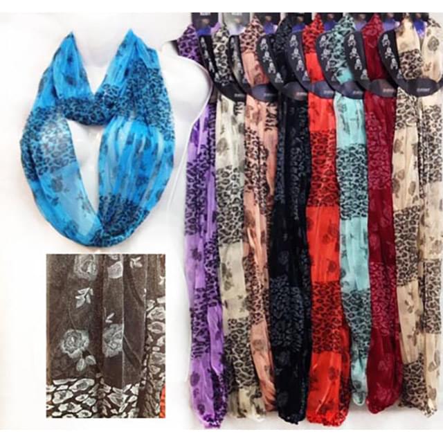*12 pcs of light weight infinity scarves with leopard and rose prints*assorted colors*ONLY $1.25 each when purchased by the dozen