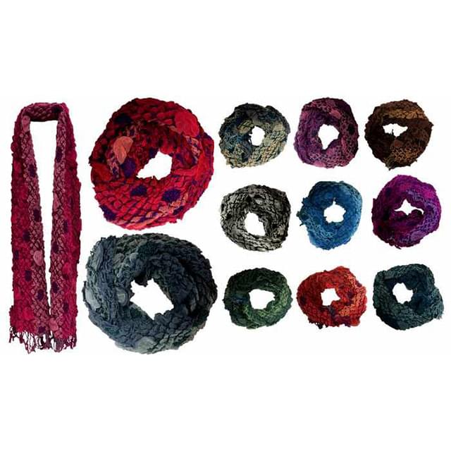 Soft, puffy scarves with crinkled texture and multicolor style