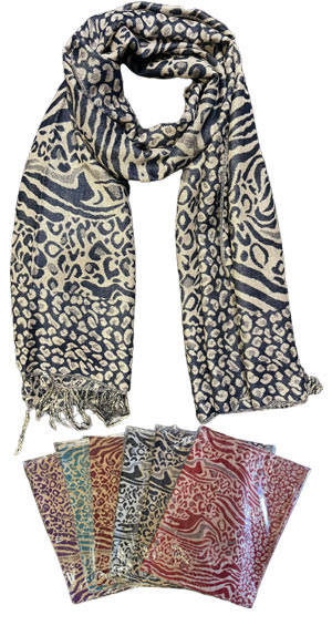 Leopard Zebra Print Pashmina Scarves - Assorted